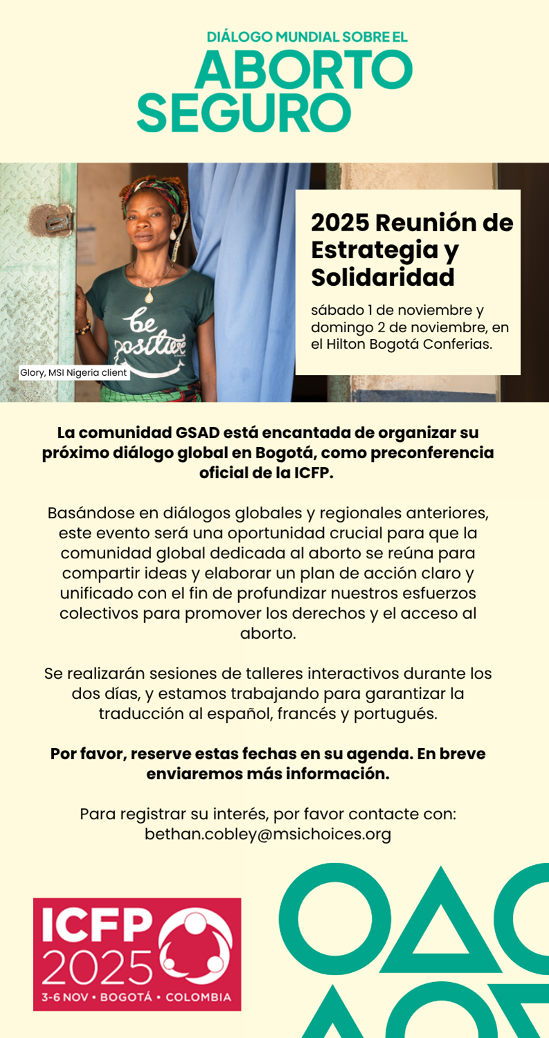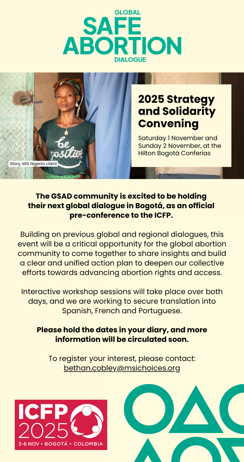Building on previous global and regional dialogues, this event will be a critical opportunity for the global abortion community to come together to share insights and build a clear and unified action plan to deepen our collective efforts towards advancing abortion rights and access.